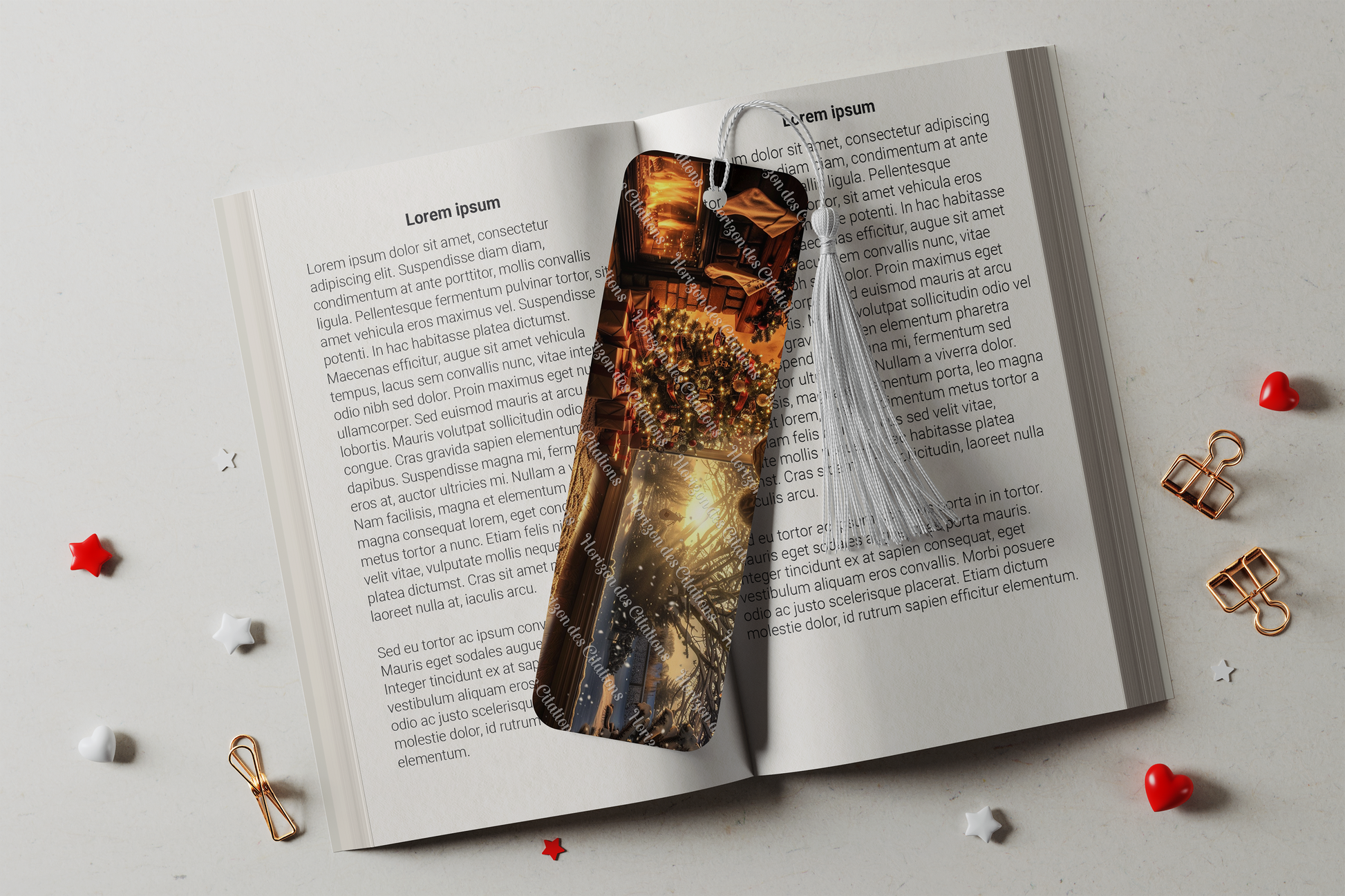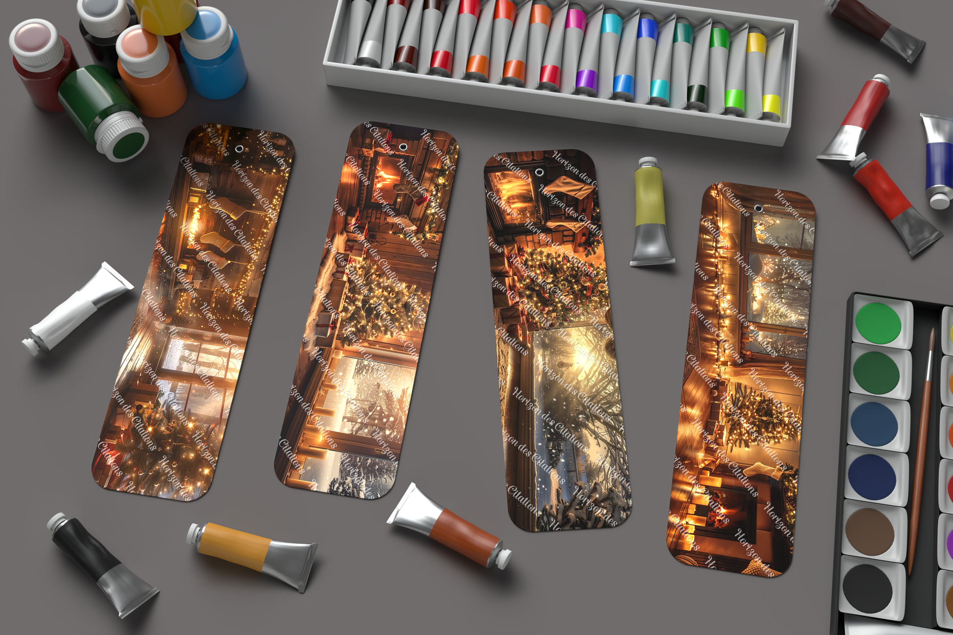 Plongez dans la magie scintillante des fêtes avec cet ensemble de quatre signets en aluminium de la collection Lumières de Noël. Chaque signet capture l'essence même de l'ambiance chaleureuse et féerique de Noël : des portes accueillantes ornées de guirlandes lumineuses, des couronnes de l'Avent illuminées, et cette atmosphère enchantée qui rend la saison des fêtes si spéciale.