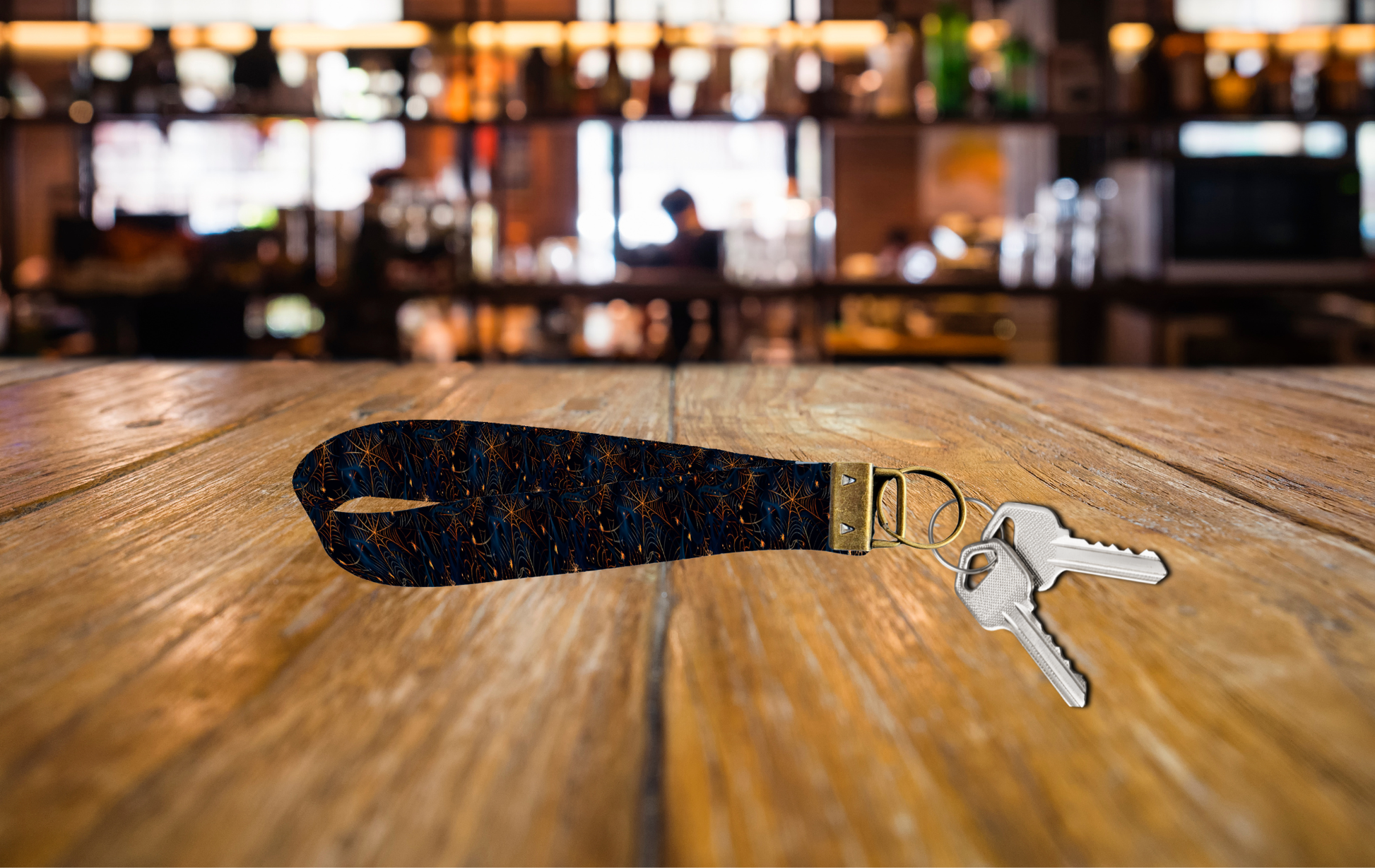 Apportez une touche d’élégance sombre à vos clés avec le porte-clés poignet Toiles Enchantées.