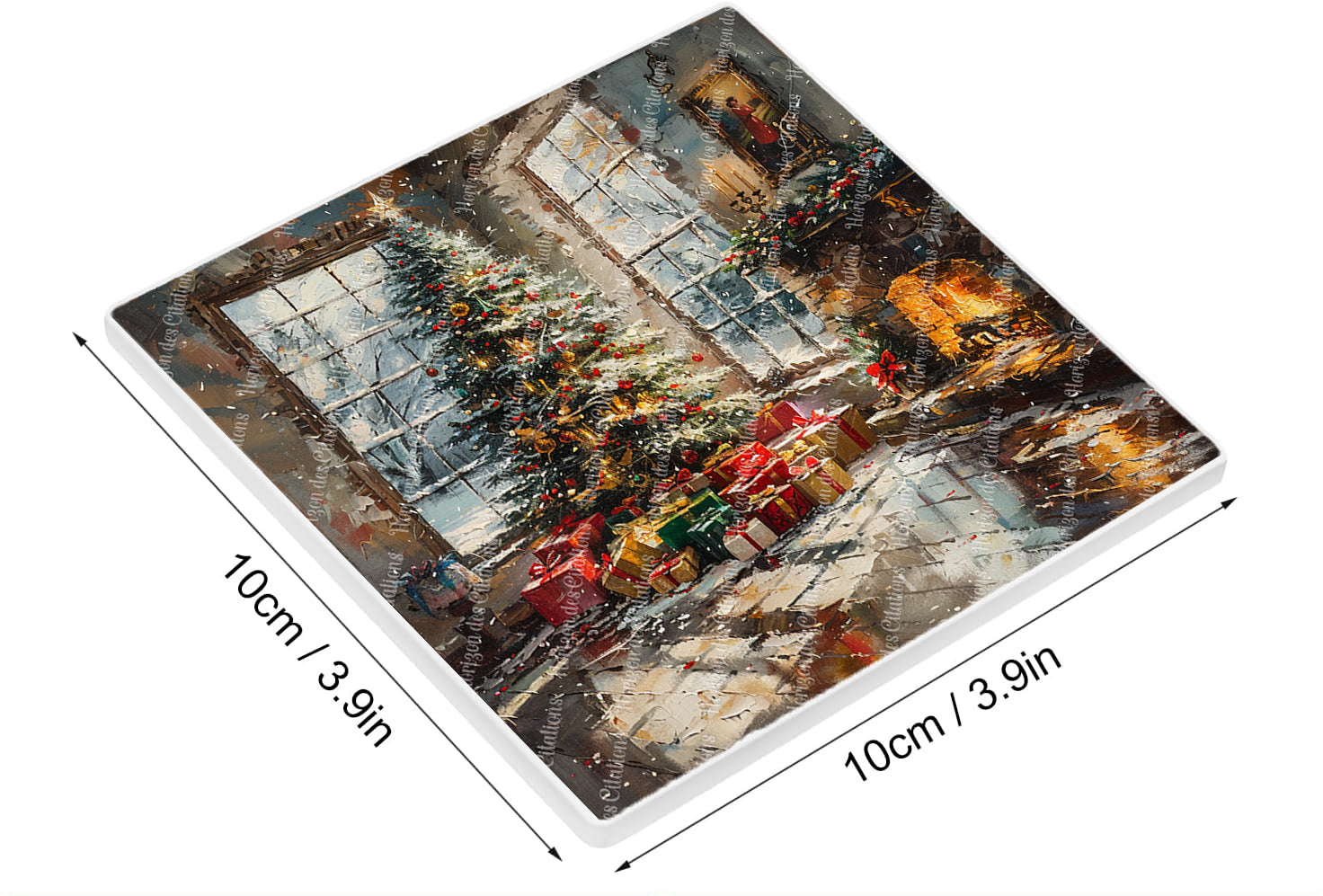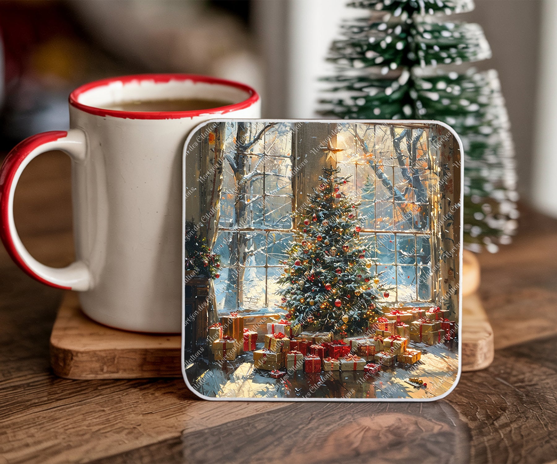 Chaque sous-verre raconte une histoire : celle de l'anticipation joyeuse, des retrouvailles familiales, de cette atmosphère unique où le temps semble suspendu. Le style pictural aux coups de pinceau expressifs ajoute une dimension artistique qui évoque les peintures impressionnistes, transformant ces scènes de Noël en véritables œuvres d'art miniatures.